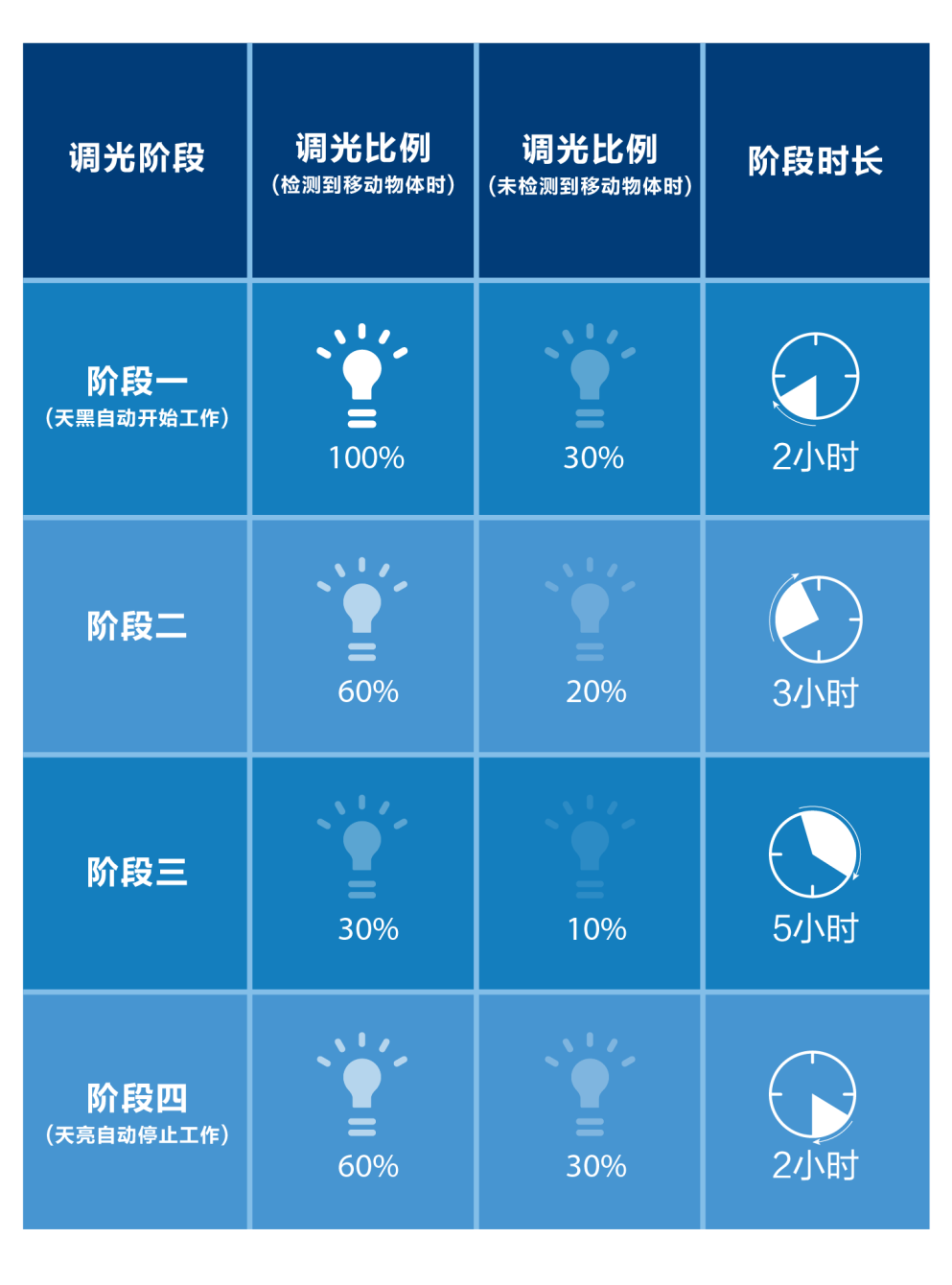 蓄电强,寿命长。内置单晶硅光伏板,磷酸铁锂电池及控制器,高达2000次循环,有效使用寿命长达10年。不仅如此,阴天也可蓄电,灯光可以连续使用3天。