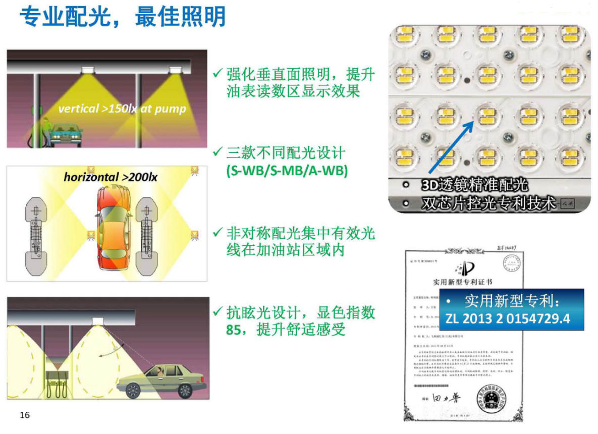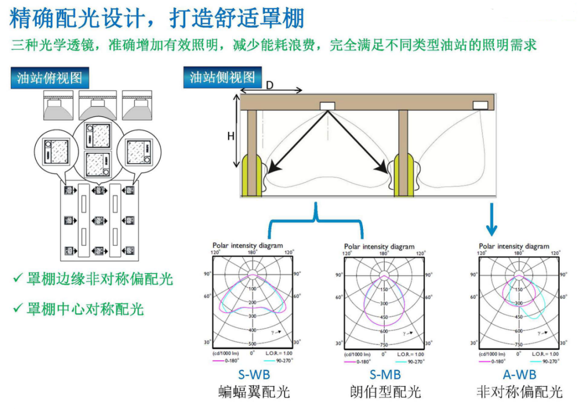 偏配光可将光线集中在加油站的有效照明范围内
