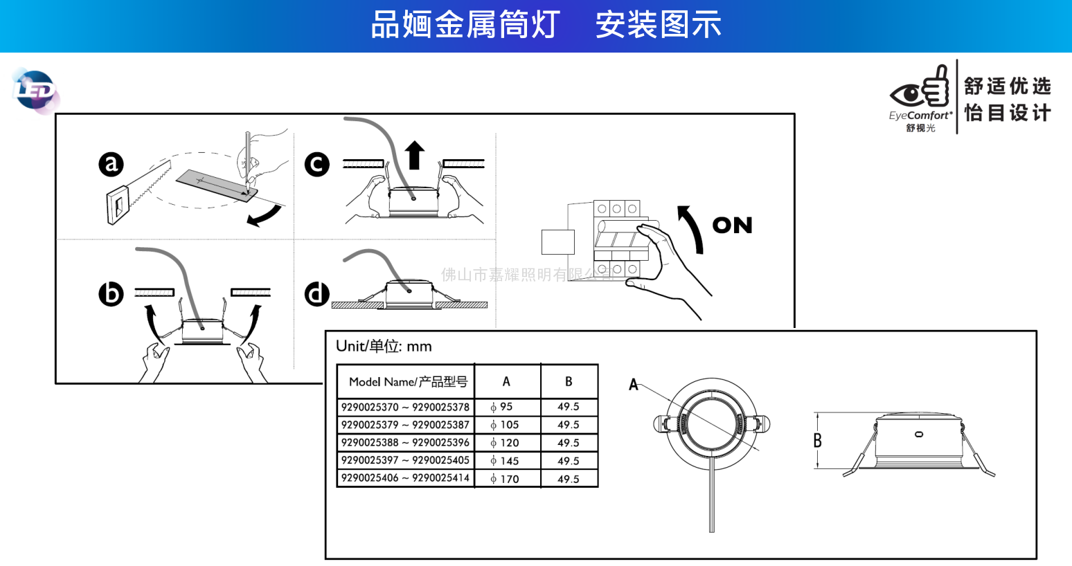 高效安全 长寿节能 采用高效 LED,光效达 97lm/W (6.5W),同时具备 25000小时使用寿命, 节约维护成本