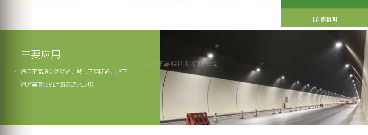 适用于高速公路隧道、城市下穿隧道、地下通道等区域的道路及泛光应用 -