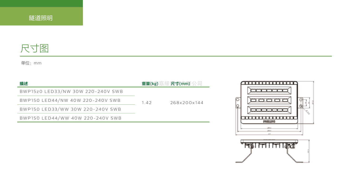 - Philips飞利浦LED隧道灯BWP150主要应用于高速公路隧道/城市下穿隧道IP66防水