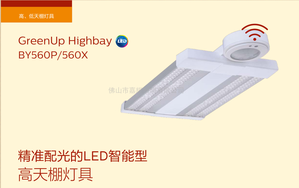 飞利浦GreenUp BY560P/560X是一款*,坚固耐用,光学性能良好,具有多种配光方案,多种安装方式的LED高天棚灯具,可以广泛应用于工厂,仓库,购物中心,机场,体育场馆等各种高天棚照明场合。