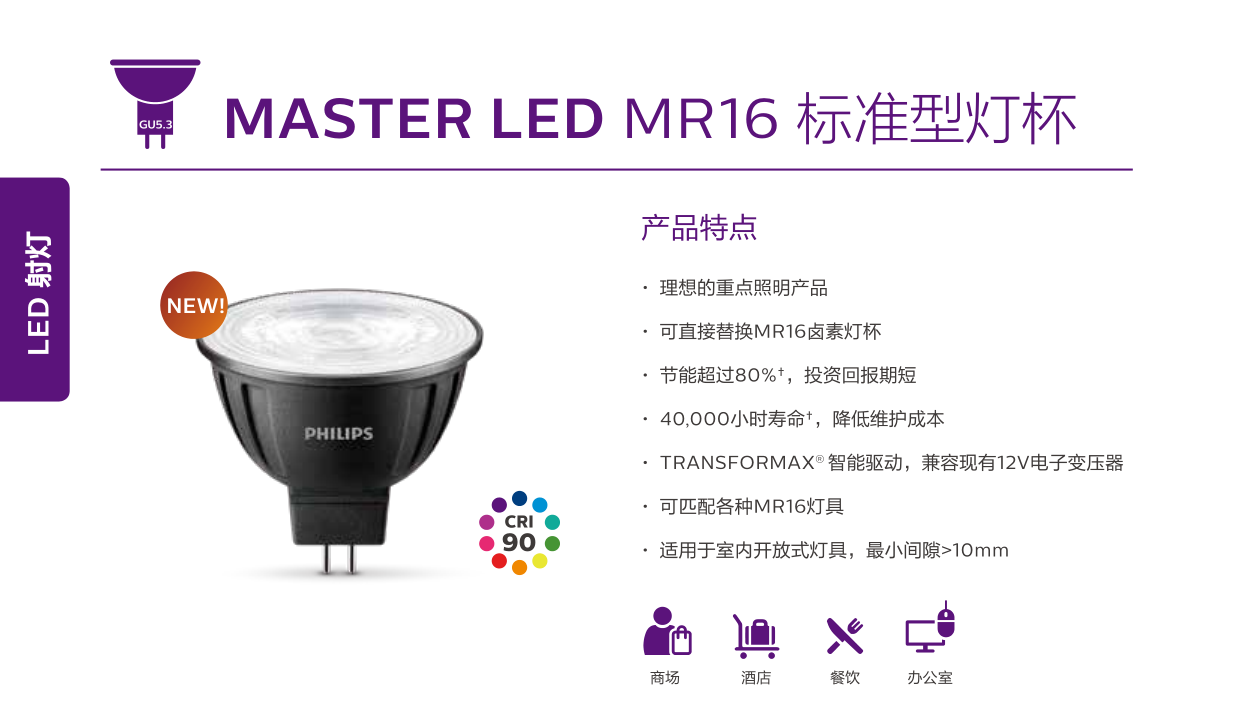飞利浦MASTER LED MR16 6.5-50W不可调光12V/LED灯杯产品特点