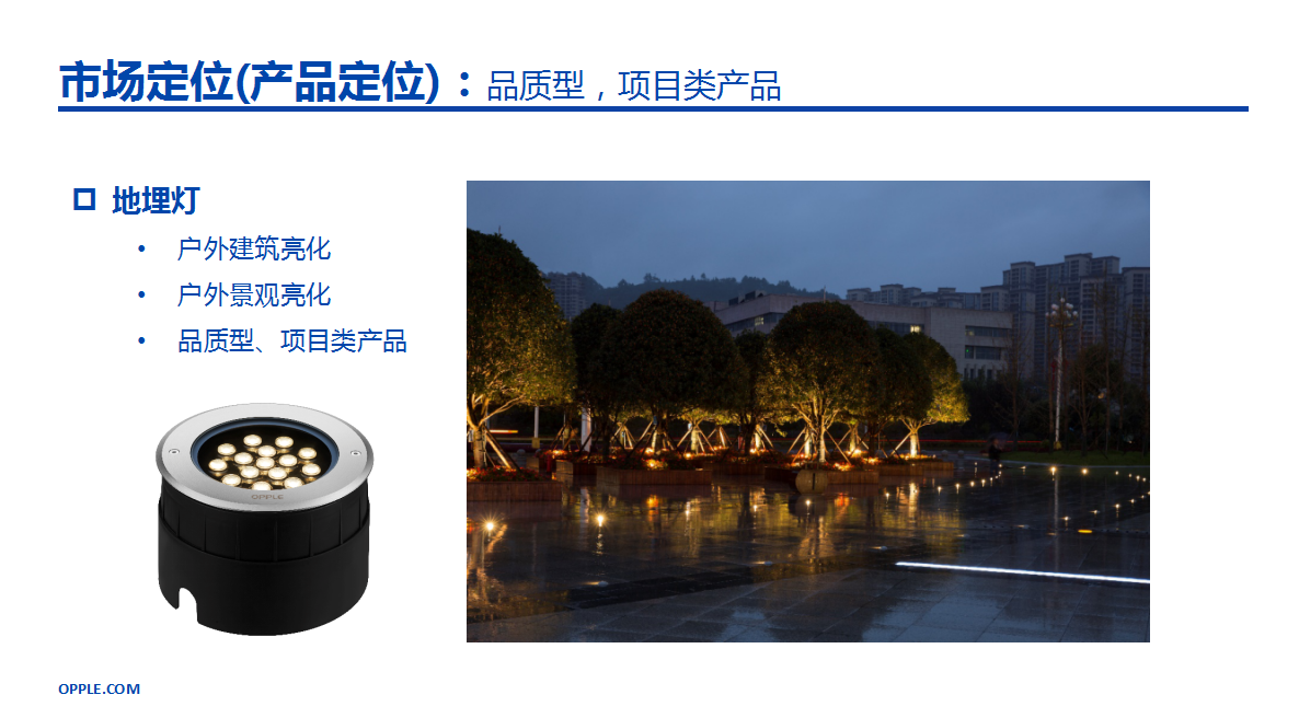 欧普LED地埋灯的产品别名分别为:LED埋地灯,LED射灯,防水射灯,水池灯,IP67地埋灯