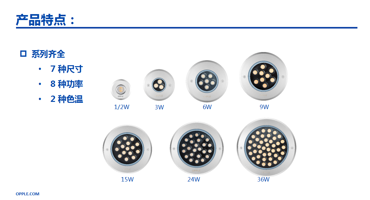 欧普照明G01系列24V户外IP67低压圆形LED地埋灯系列齐全 7 种尺寸 8 种功率 2 种色温