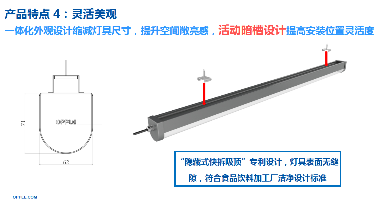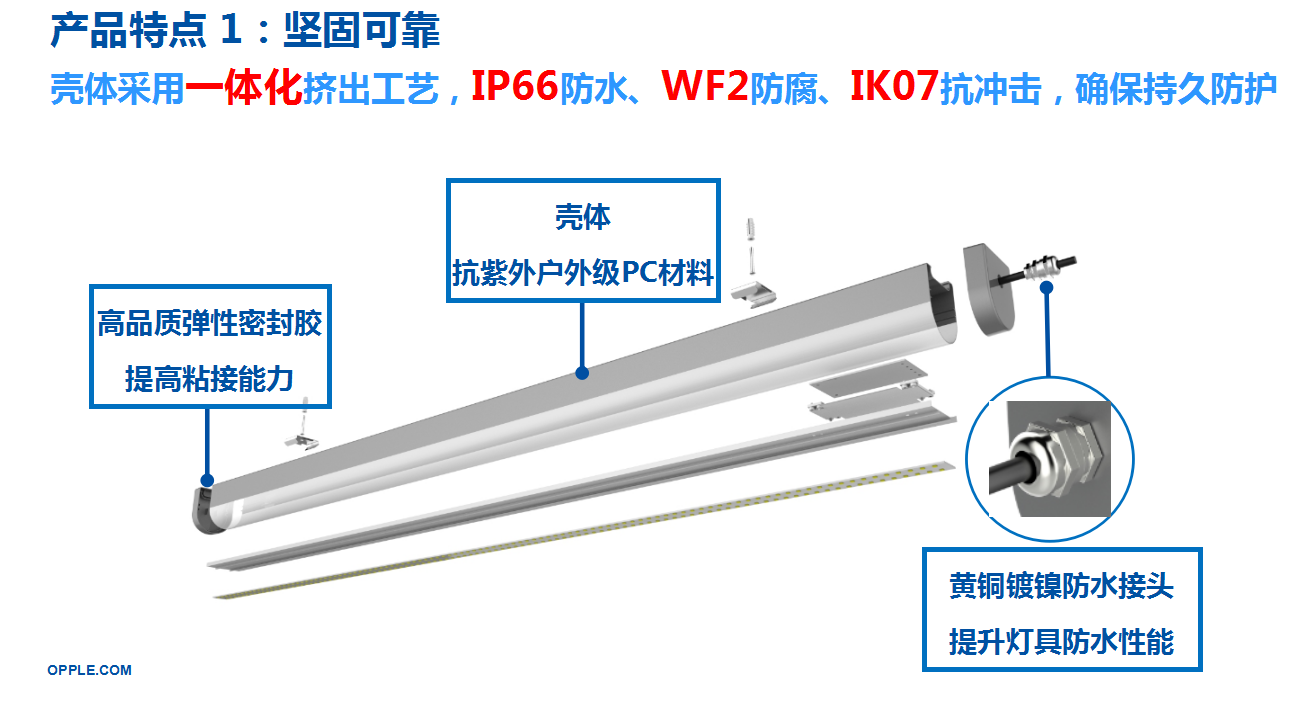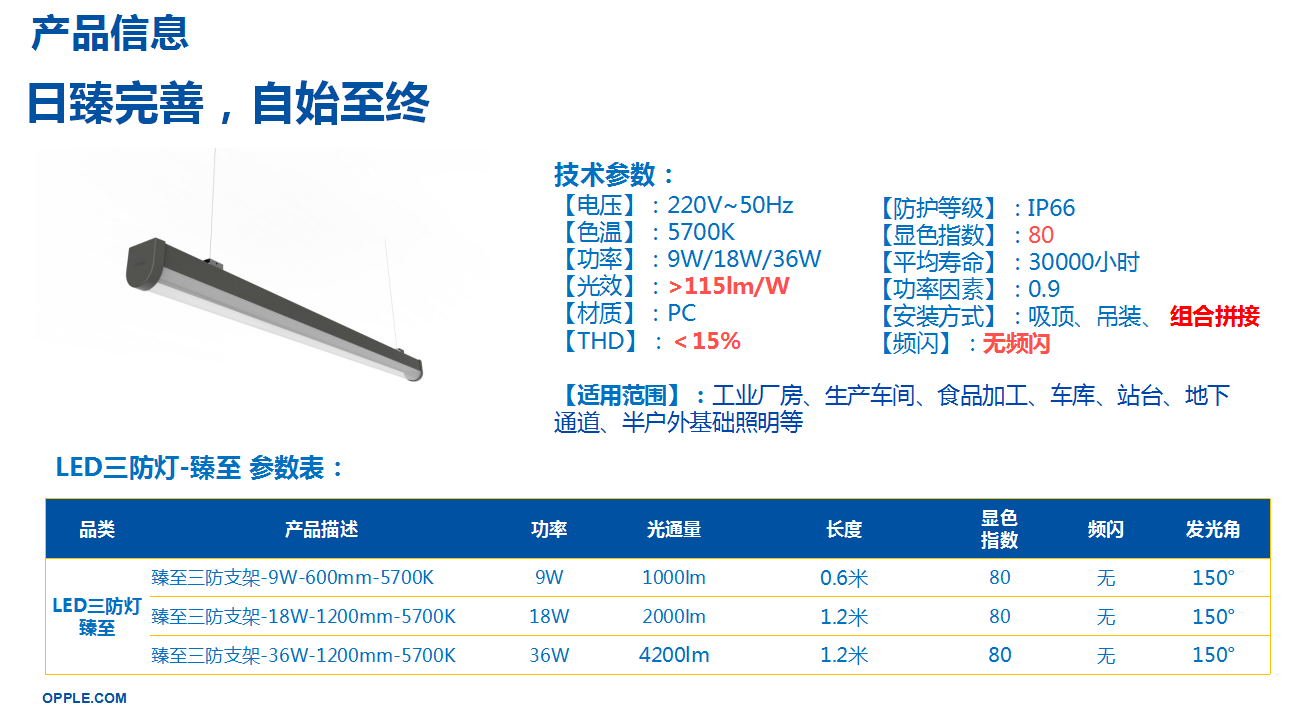 【欧普照明代理臻至1.2米一体化LED三防支架灯使用范围】:工业厂房、生产车间、食品加工、车库、站台、地下通道、半户外基础照明等