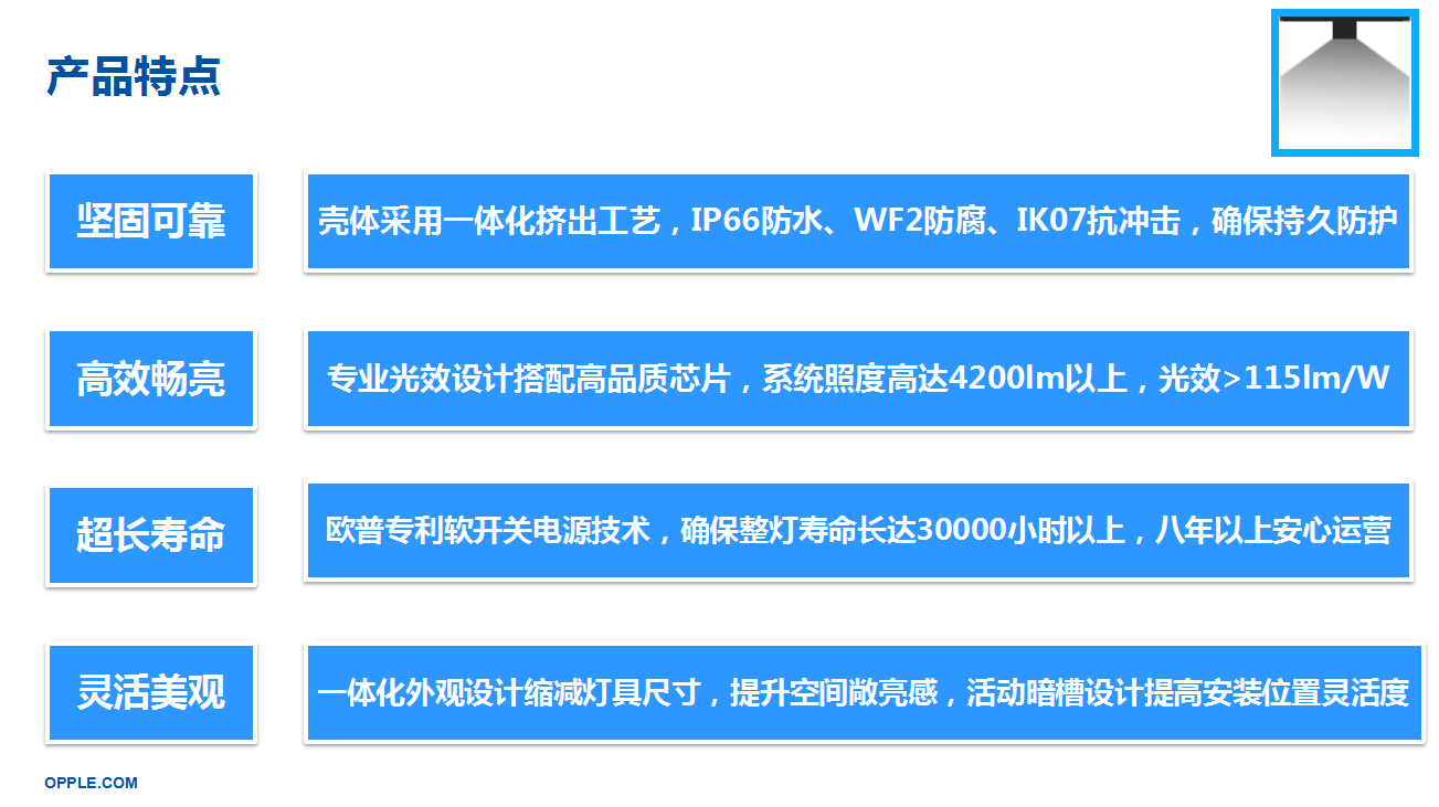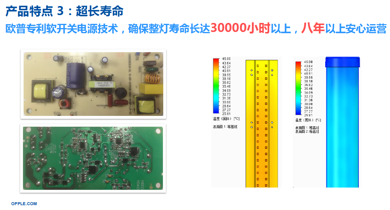 欧普专利软开关电源技术,确保整灯寿命长达30000小时以上,八年以上安心运营