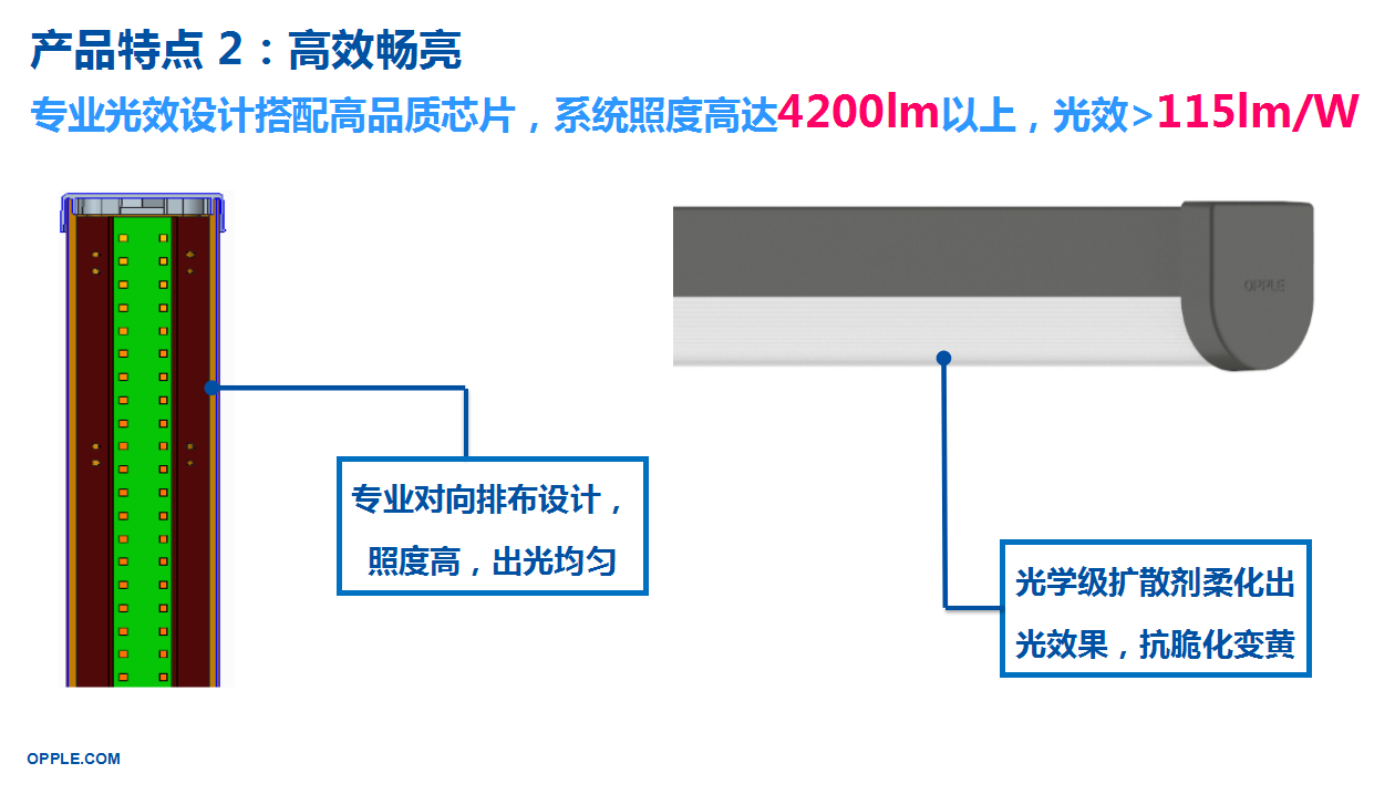 光效设计搭配高品质芯片,系统照度高达4200lm以上,光效>115lm/W