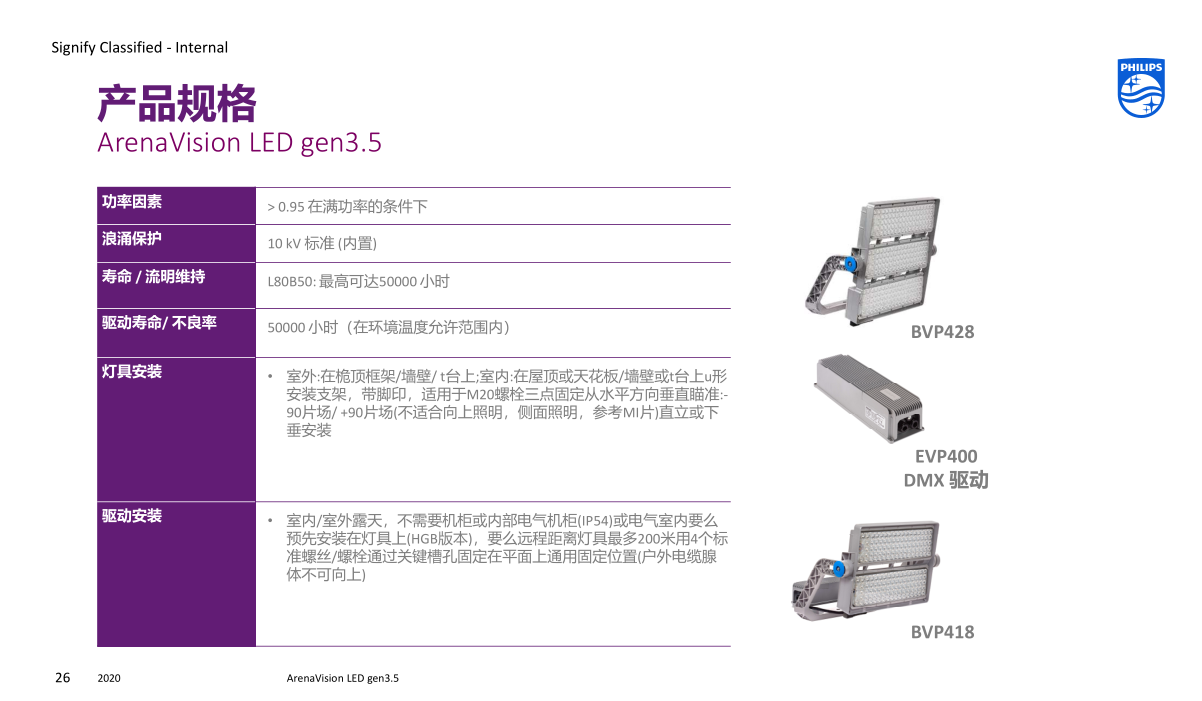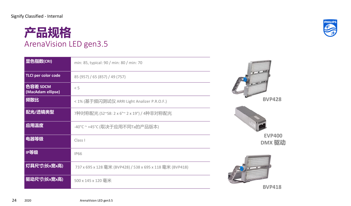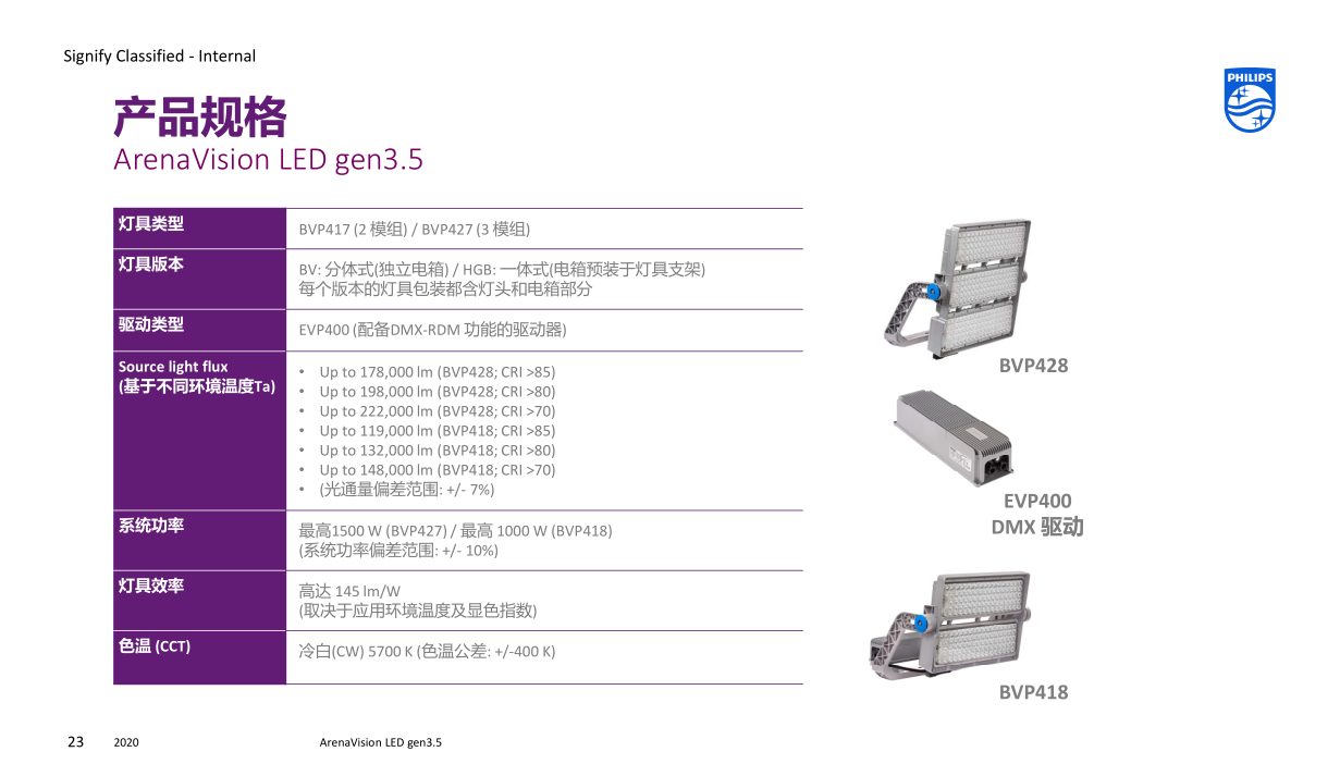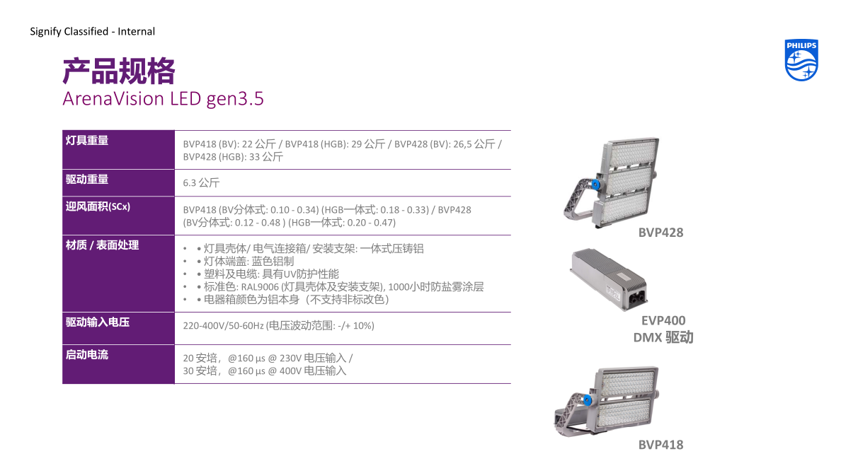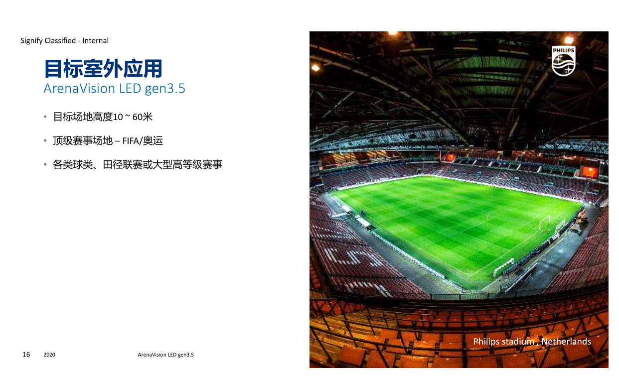 飞利浦ArenaVision LED体育照明系统,支持新的体育高清直播标准,配备体育及多功能场馆应用灯具,提供出色的照明质量,搞效的散热管理和长寿命.满足室内、室外应用,ArenaVision LED 分别提供2款一体化高压铸铝灯体和对应的LED模组,并提供灵活的一体式、分体式独立电器箱安装方式,确保简易的安装和低初始投资.