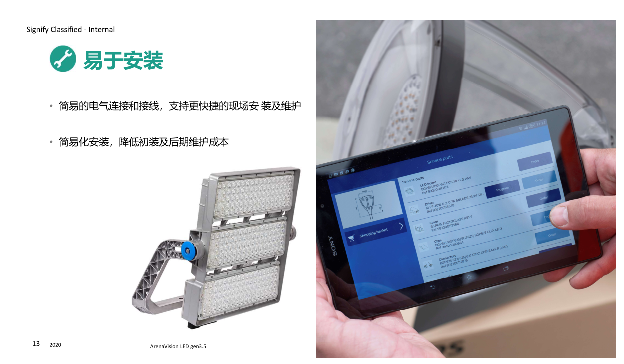 • 针对目标体育场馆,轻的灯具总重及更小迎风面积,有效降低场馆的基础建设投资