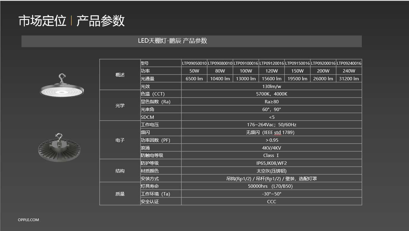 - OPPLE欧普LED厂房灯鹏辰系列200W高光效三防高天棚灯LTP09200016