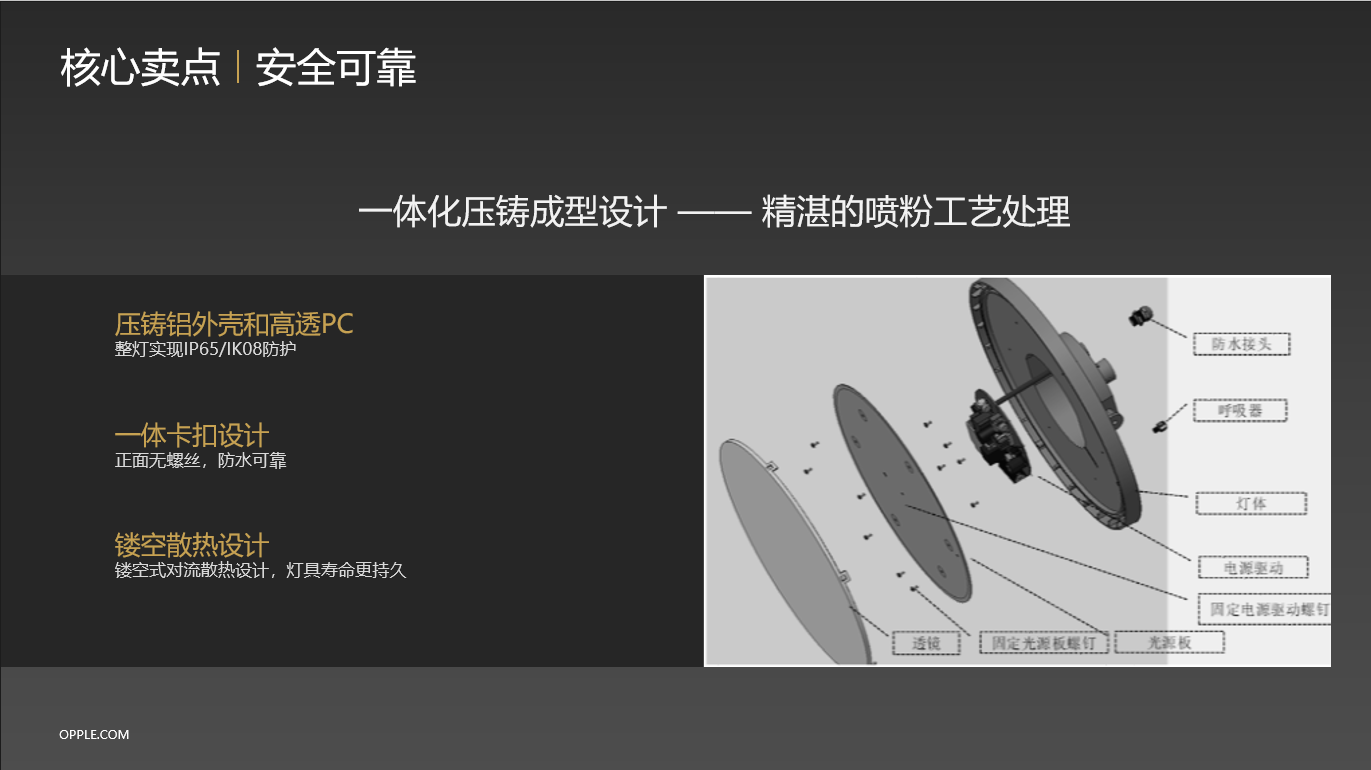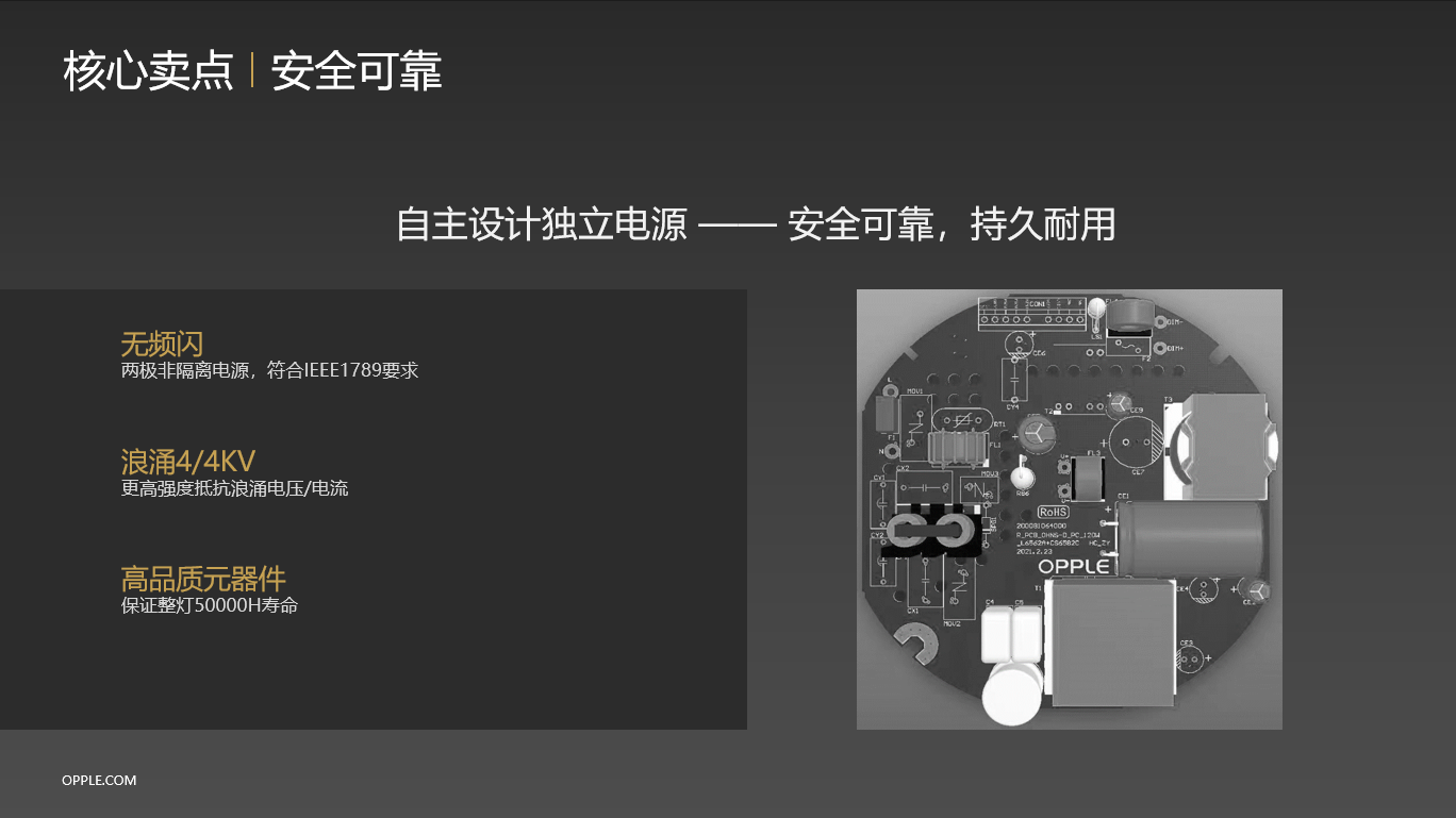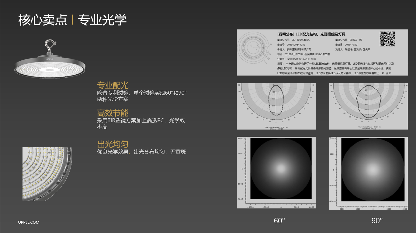 鹏辰采用优质PC材质透镜,基于欧普专利透镜方案实现60°和90°。自主独立设计的驱动效率高,无频闪。