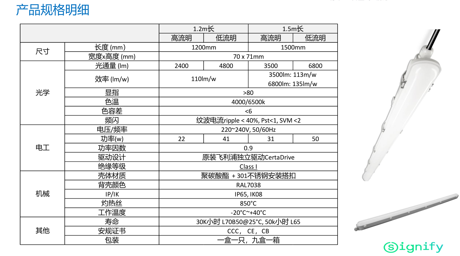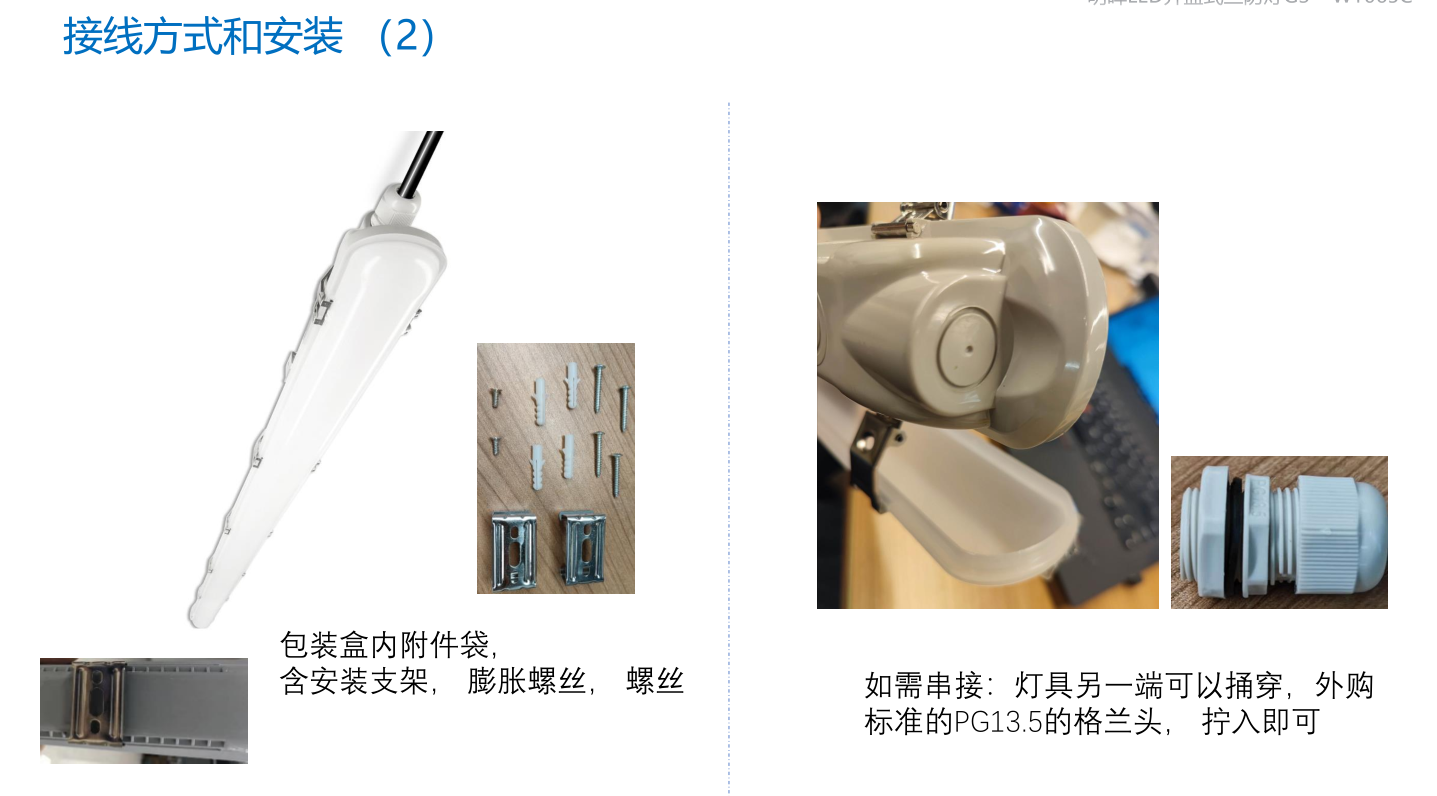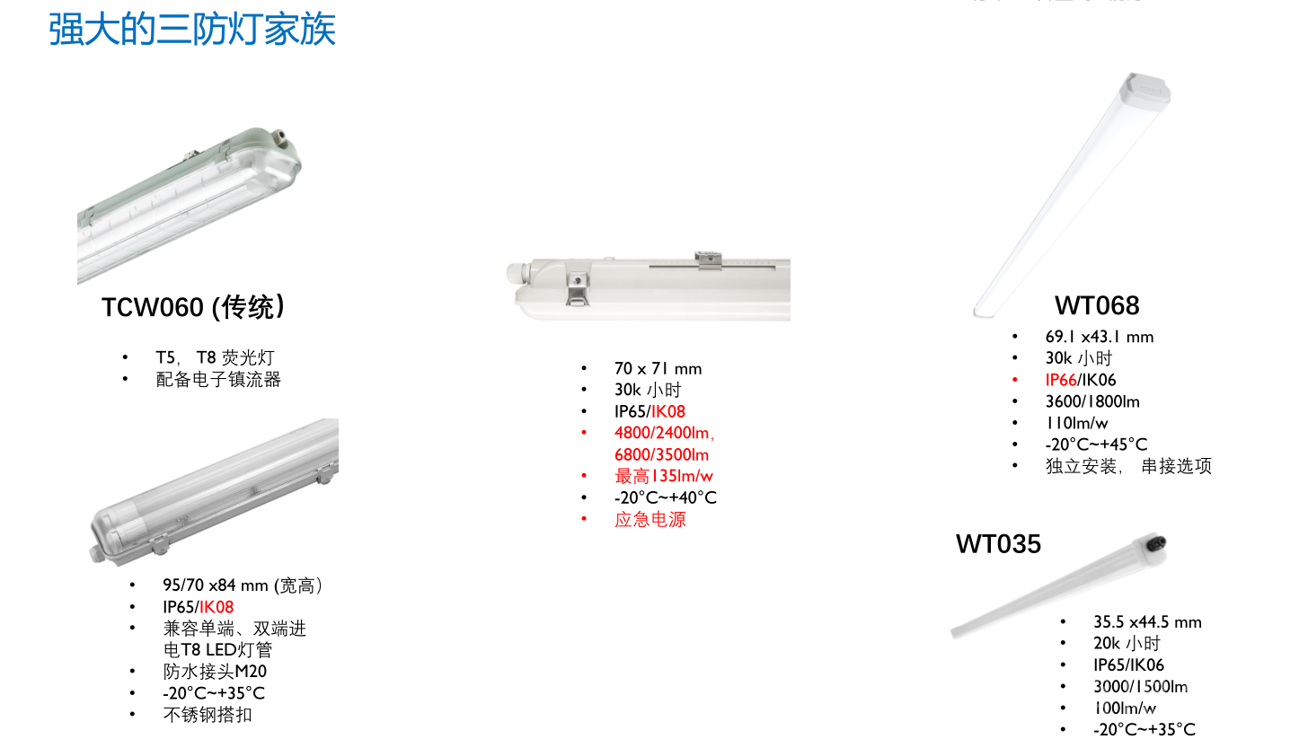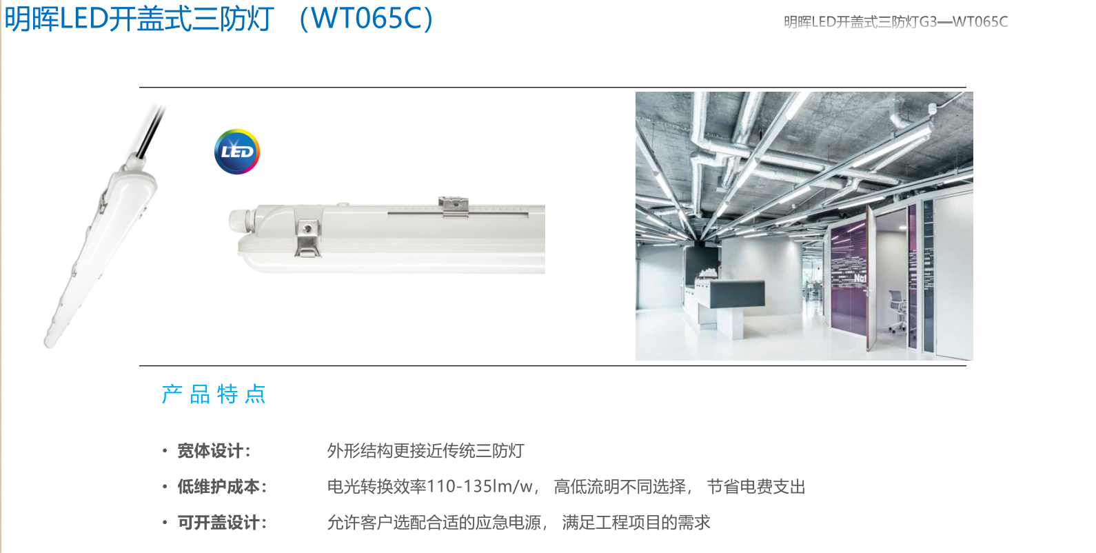 • 宽体设计: 外形结构更接近传统三防灯