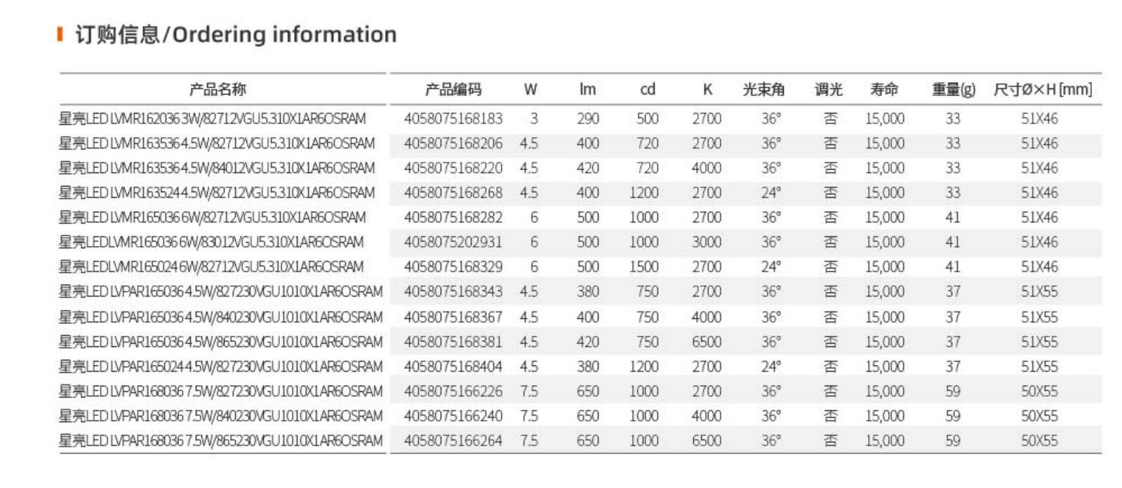 - OSRAM欧司朗星亮220V PAR16 GU10 4.5W LED灯杯酒店射灯光源