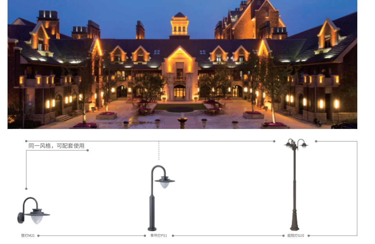外型简洁大方,以简约时尚为设计元素,系列型设计风格,壁灯、草坪灯和庭院灯采用同一风格设计,可应用于有整体风格建筑配套,安装灵活方便,适合各类场所安装使用;采用优质铝合金制成,表面聚酯喷层处理,适应气候变化,耐腐蚀,适合长期在户外环境使用工作;采用优质高透光率 PC 透光材料,具有优秀的光学扩散作用,光线柔和不刺眼,实用性能卓越;辰光系列灯具采用一线品牌 CREE-COB 光源,以及内置高品质 LED 恒流驱动电源,功率因数高,配合热学散热设计,科学散热,有效保证灯具高效工作的同时保证长久的使用寿命;适用场所:广泛应用于街道、园林、居民小区、旅游景区、公园、广场等公共照明场所。