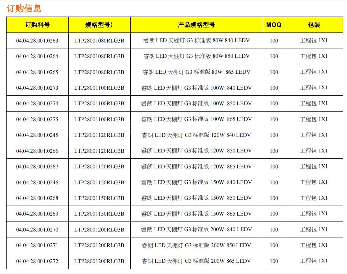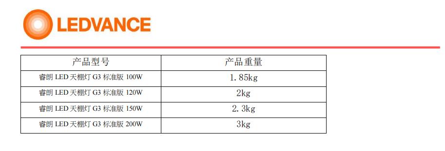 品牌:朗德万斯 加工定制:否 型号:150W 光源类型:集成 光源功率:200 W 电压:220 V 灯罩型式:深照型 主要适用范围:机场、车站和室内体育场 LEDVANCE® 睿朗LED天棚灯G3标准版系列灯具如同其名,独特的散热鳍片设计,增加了空气对流空间,增加了美感亦满足散热快,性能好需求;传承优越的风格设计,延续优良的产品性能,提升产品的性价比以及竞争力;能广泛应用于工业和商业。该系列有4种外壳尺寸,可用于4种不同瓦数,以满足各种场景的应用要求。无论是改造还是新建,这都是一个理想的解决方案产品特点⚫ 系统光效:130lm/W⚫ 控制方式:开关⚫ 产品色温:4000K, 5000K, 6500K,⚫ 产品显指:CRI ≥80⚫ 产品材质:铝压铸外壳,PC 透镜⚫ 防护等级:IP65. IK08⚫ 产品寿命: 50,000 小时⚫ 外置线长:300mm⚫ 产品认证: CCC⚫ 防腐等级:WF2⚫ PF>0.95,应用领域⚫ 普通工业和商业照明应用⚫ 仓库照明应用⚫ 公共空间(机场、车站和室内体育场)